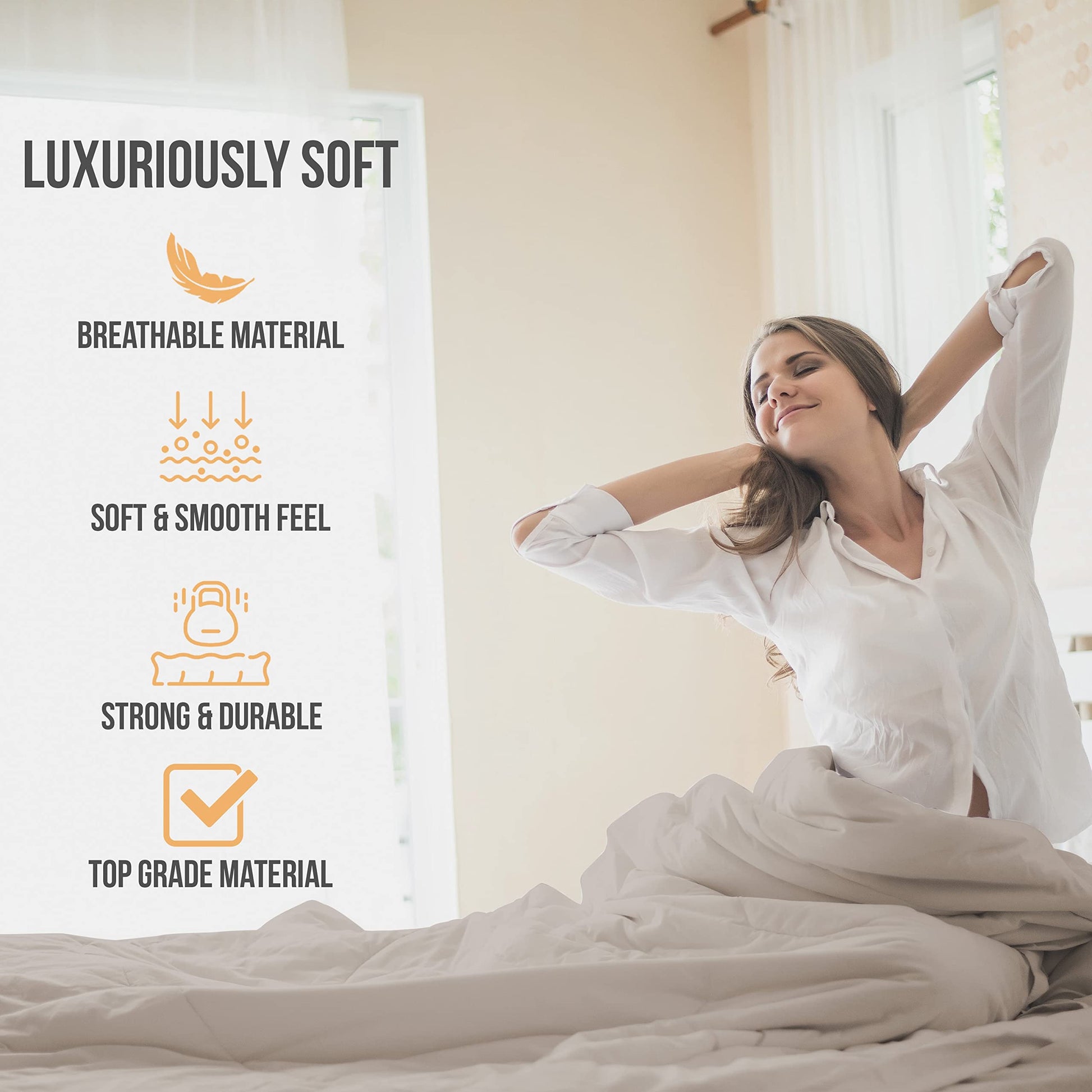 - SECURE MATTRESS FITTING TECHNOLOGY – Queen bed set deep pockets that fit mattresses up to 15 inches, elastic all around and corner straps built in to stay in place, providing strong corner grip without needing for clips or fasteners