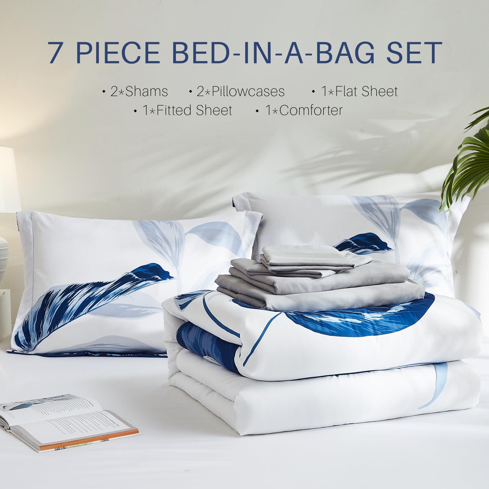 - 7 Pieces King Comforter Set: 1 King Comforter 102"x 90", 2 Plaid Pillow Shams 20"x 36"+7", 1 King Fitted Sheet 78" W x 80" L + 14"(There is a fitted pocket for easy storage), 1 King Flat Sheet 108" W x 102" L+4", 2 Standard Pillowcases 20" W x 40"L+4"(Envelope mouth, easy to replace)