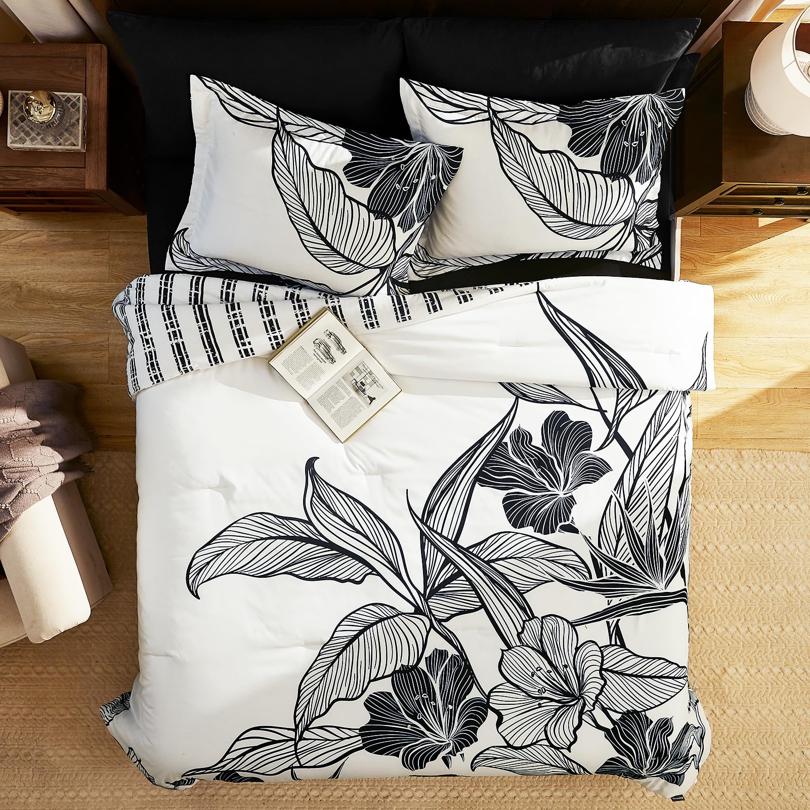 - Phoenix Flower Design: Unlike ordinary floral king size comforter set, We design is unique beautiful. The black comforter is printed with fiery red flowers, blooming flowers like phoenix spread the wings. Highlights the house-owner's love for life and romantic pursuit